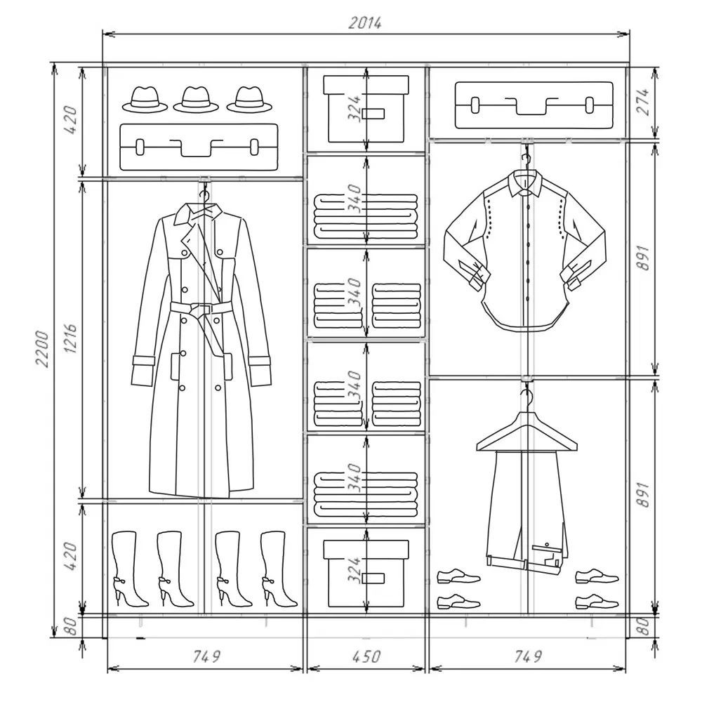 Модель 3-х дверного шкафа (полки в центре)